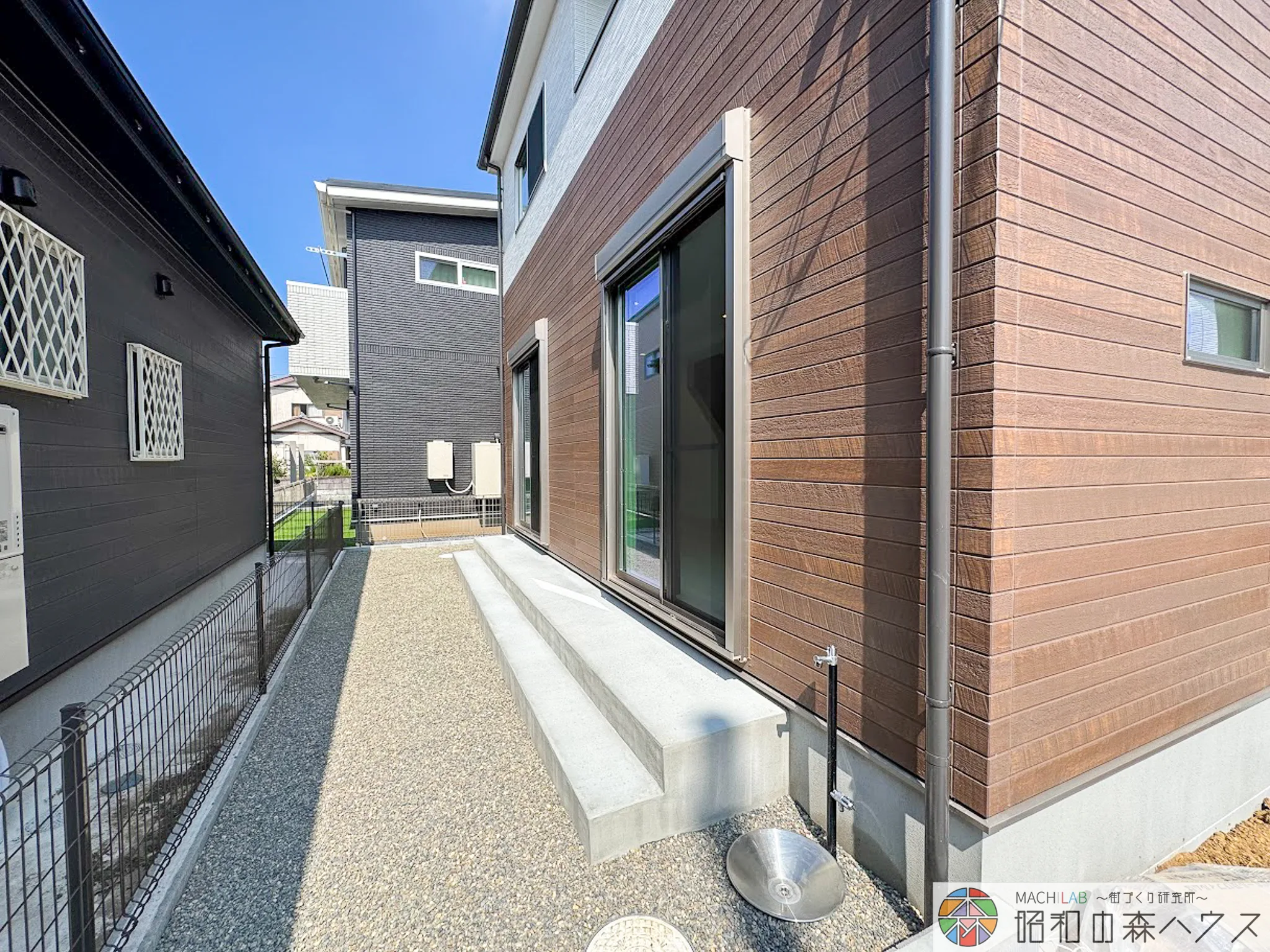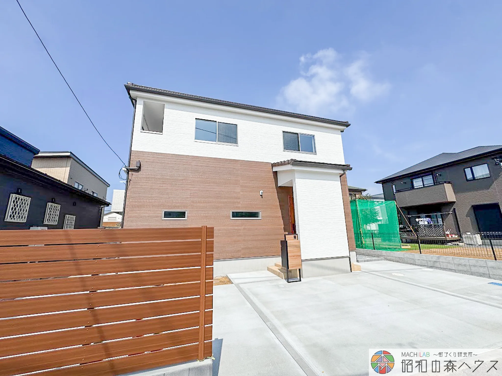 外構も目隠しフェンス、宅配ボックスなども木目に拘り、夢のマイホームの完成です。